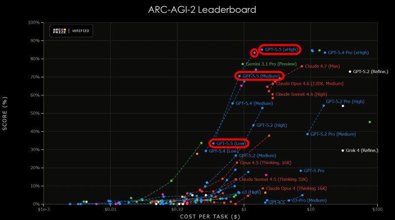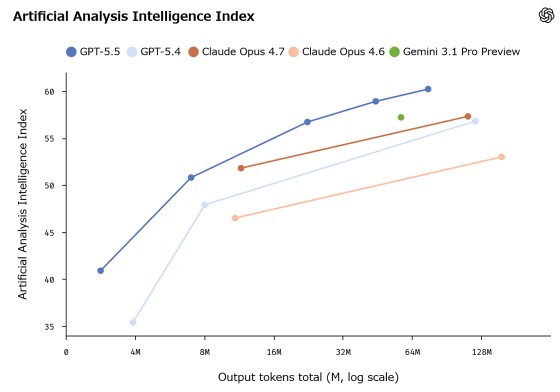 Gemini 3.1 ProやClaude Opus 4.7に首位を明け渡していたOpenAIにとって、GPT-5.5は確かに重要な反攻です。総合インテリジェンス指数で競合を3ポイント上回り、コーディング・数学・長文処理では明確な優位を確立しました。