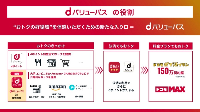 dバリューパスは、「dポイント」のお得さを体感する入り口と位置付け、決済や通信サービスの契約につなげるのが狙いのようだ